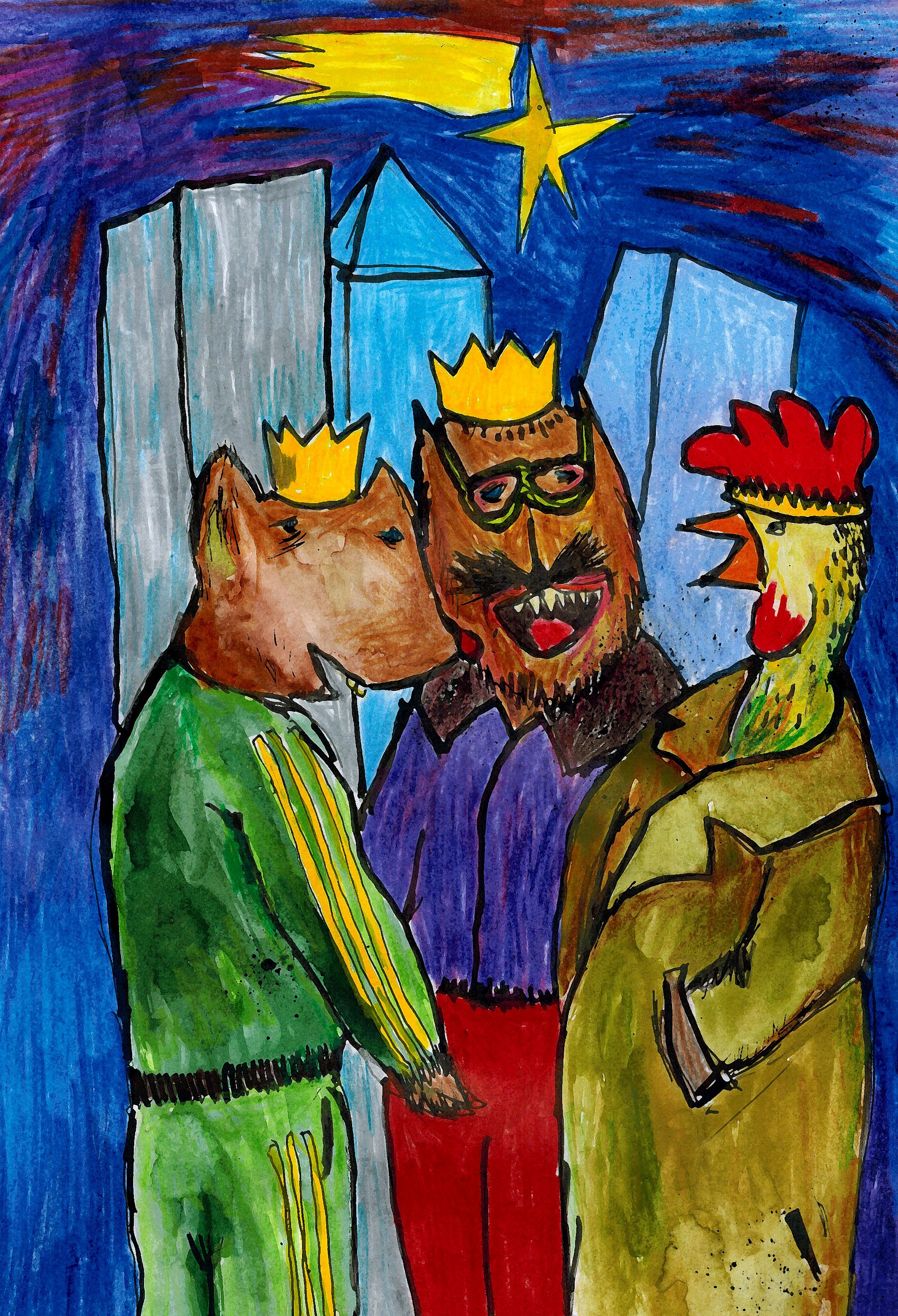 Die Bilder von Herrn B. sind vielen Menschen schon von den Montasprogrammen des Referates Seelsorge für Menschen mit psychischer Beeinträchtigung bekannt. Sie sind farbenfroh, teilen etwas mit und sind auch meist mit einem Funken Humor versehen.