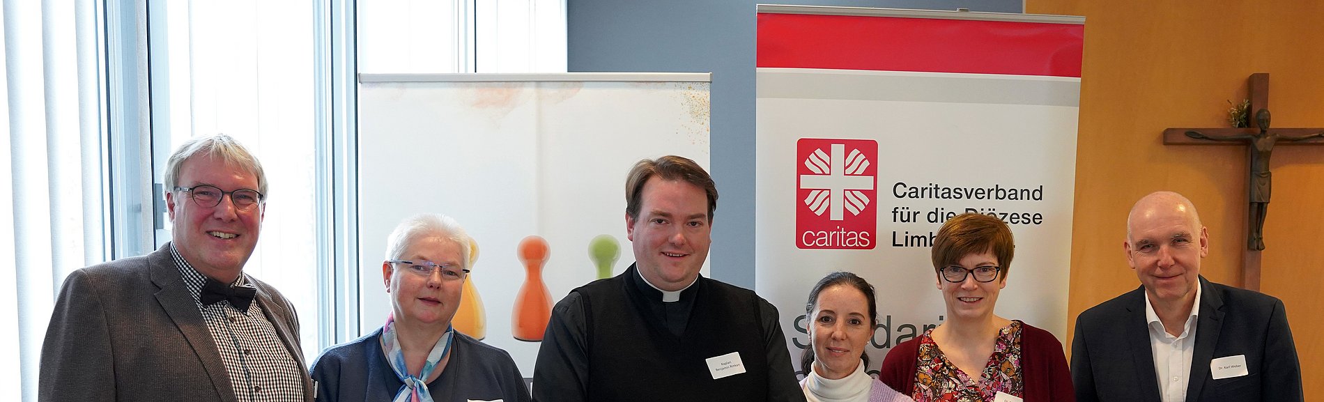 Einen Blick auf die Praxis gewährten Ines Hümmerich, Leiterin Wohnen und Assistenz in der Behindertenhilfe des Caritasverbandes Westerwald-Rhein-Lahn, und Kaplan Benjamin Rinkart, Seelsorger im Vincenzstifts in Aulhausen. „Ältere Menschen in der Eingliederungshilfe haben eine Beziehung zu Religion und Kirche“, betonte Hümmerich. Die Einrichtungen der Caritas nähmen diese Bedürfnisse ernst, feierten den christlichen Jahreskreis und religiöse Feste. „Für unsere Klienten aber auch unsere Mitarbeitenden sind solche festen Punkte wichtig“, erklärte die Caritas-Mitarbeitende. Dafür sei aber eine bewusste Entscheidung notwendig gewesen und Mitarbeitende hätten zunächst sensibilisiert werden müssen. Themen wie Tod und Trauer spielten in Gesprächen der Klienten eine große Rolle. Oftmals würden sich Menschen mit Behinderung an ihre Bezugspersonen oder Mitarbeitende wenden. „Es sind nicht nur der Pfarrer, sondern auch die Mitarbeitenden, die Seelsorge betreiben“, sagte Hümmerich. Die Caritas-Einrichtung lade zudem Gemeindemitglieder zu gemeinsamen Gottesdiensten und Andachten ein.